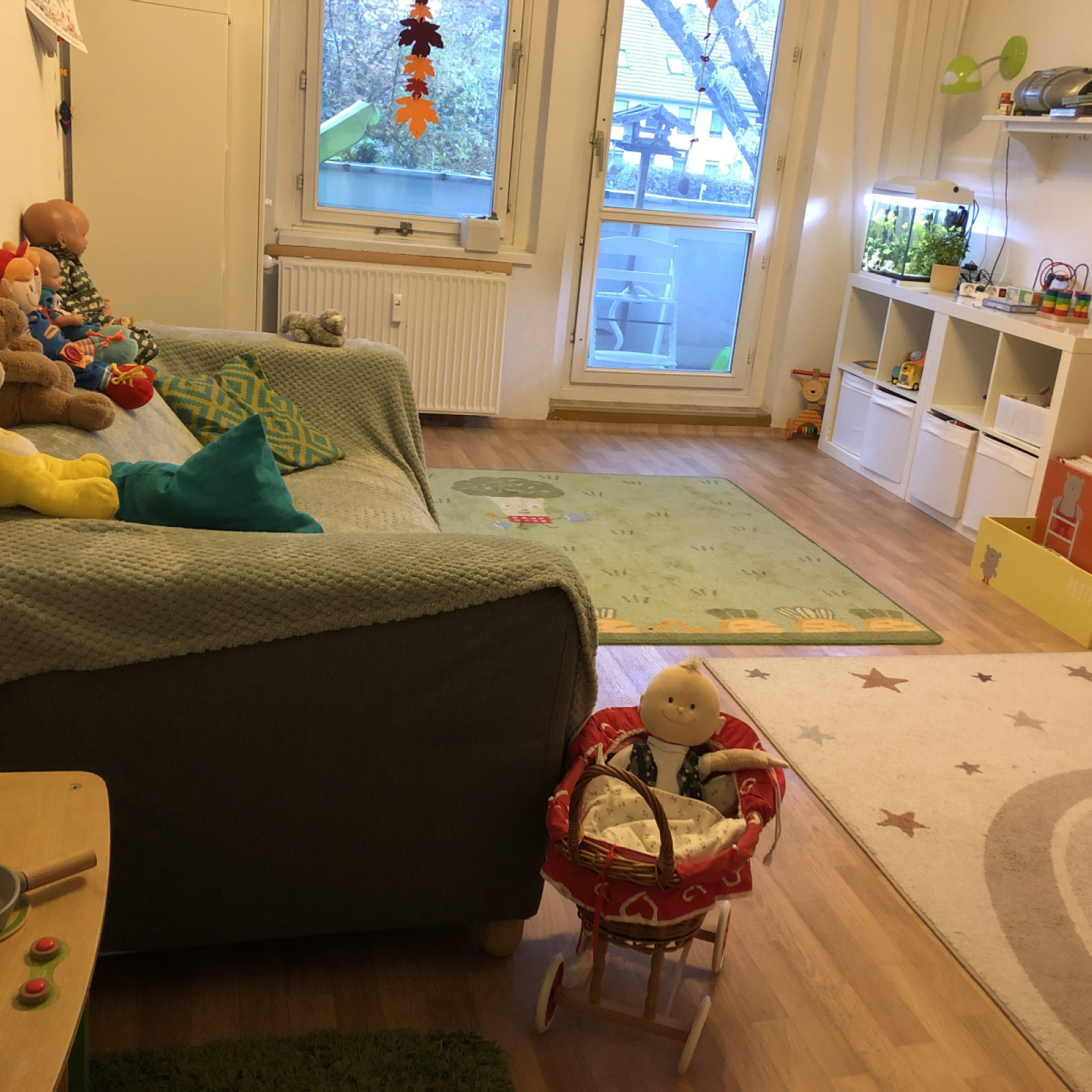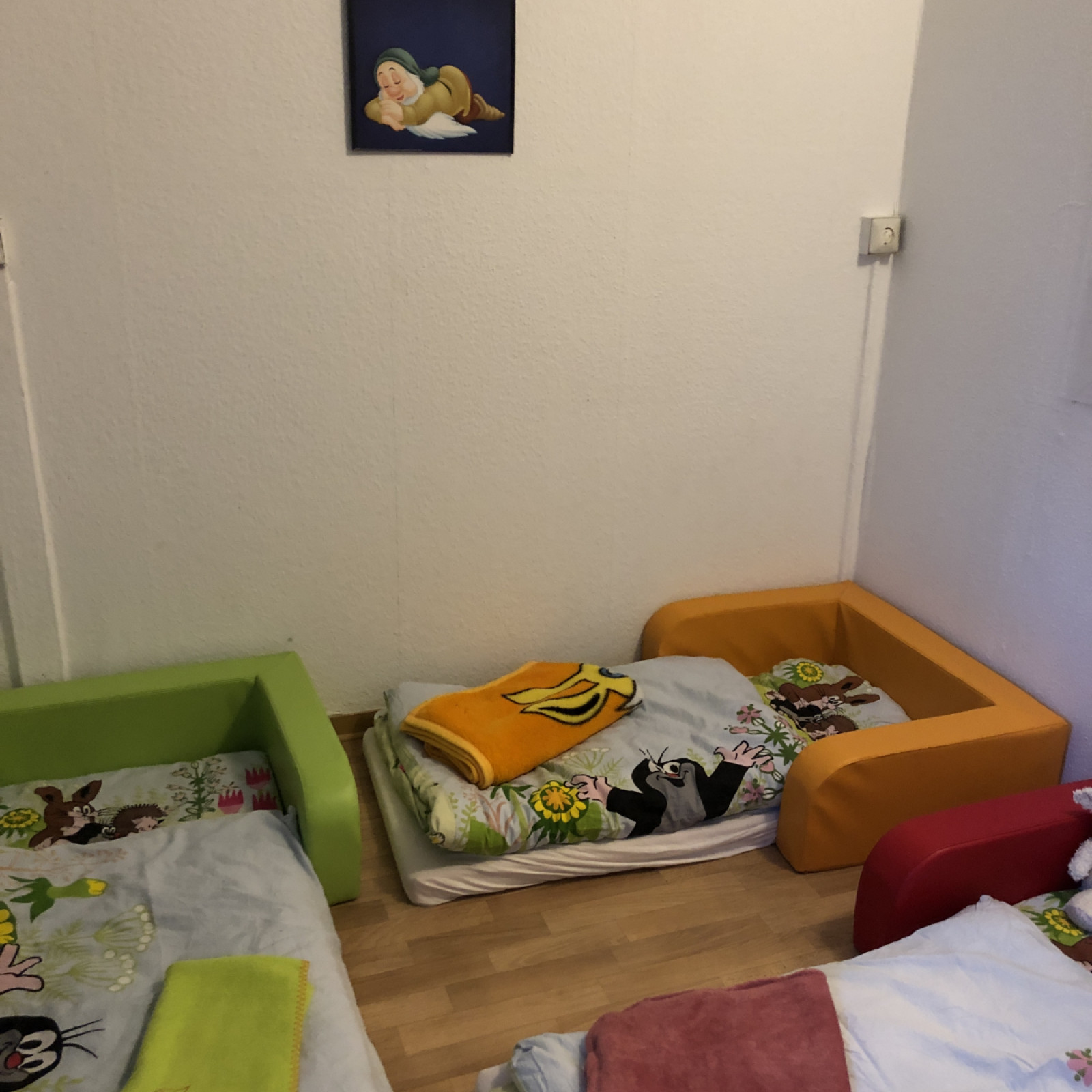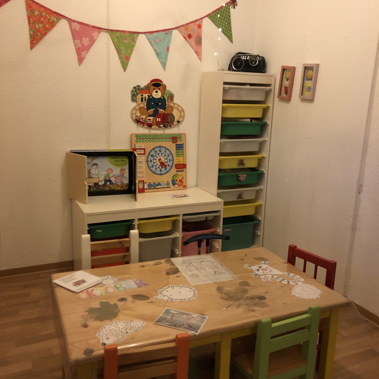 Wir haben einen kleinen Monitor mit Bilder wo sich Eltern am Nachmittag ansehen können was ihre kleinen Helden den Tag über gemacht haben.